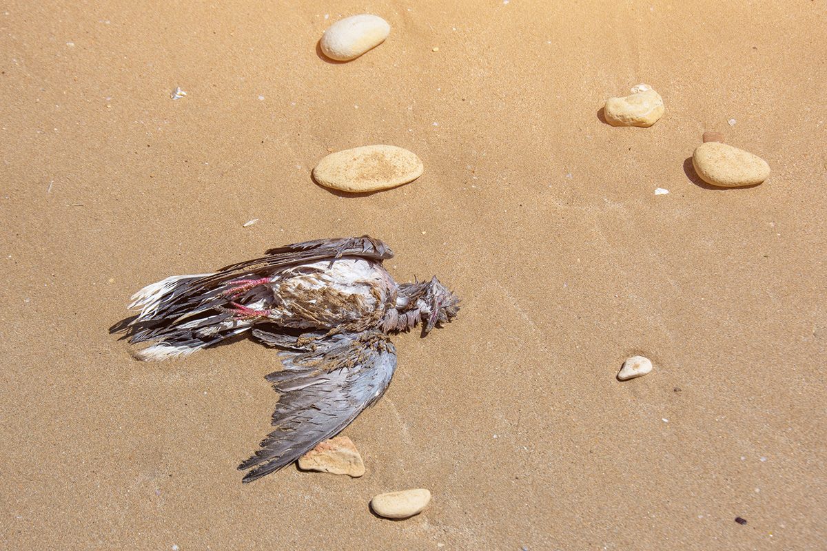 Hvis man finder en død fugl på stranden, anbefaler myndighederne, at man ikke rører den med bare hænder, blandt andet af hensyn til risikoen for fugleinfluenza.