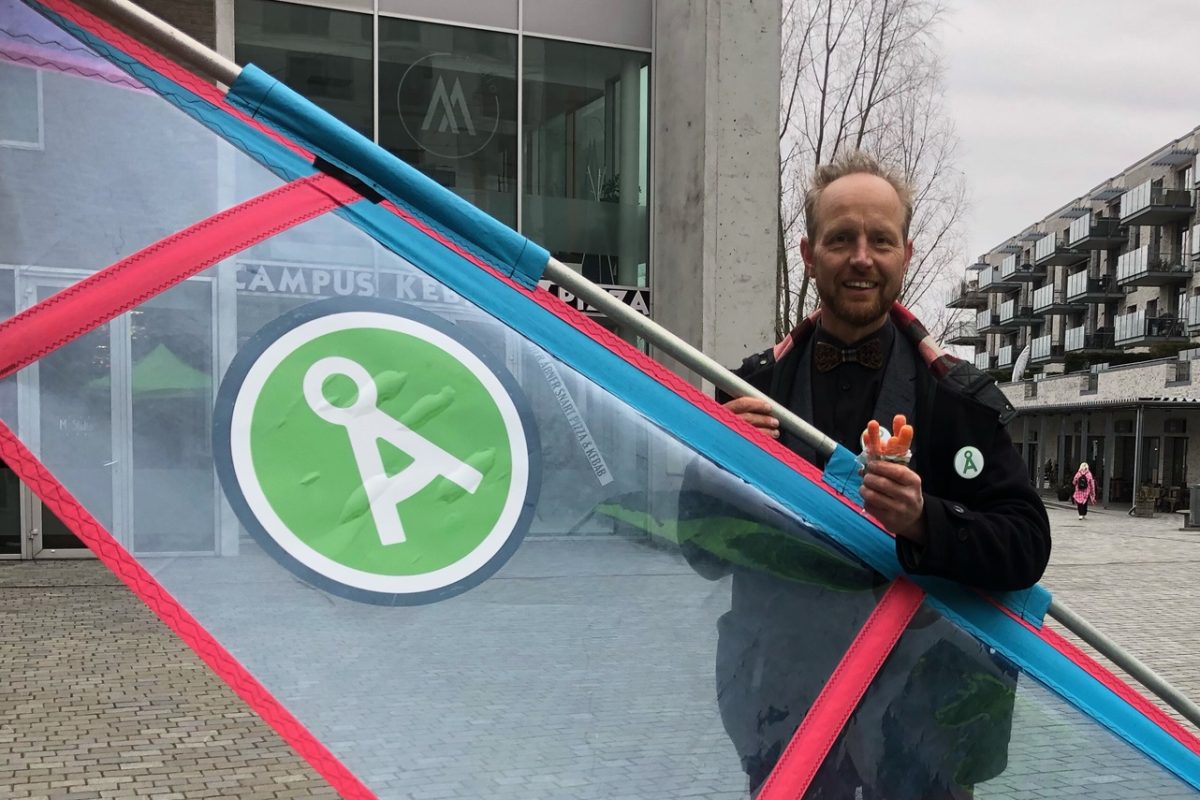 Ved debatarrangementer får mit roll-up en del opmærksomhed, da jeg blot har sat Alternativets logo på et surfsejl, som jo bruges resten af året. Jeg har ingen flyer, men uddeler økologiske gulerødder overalt, hvor jeg kommer frem.