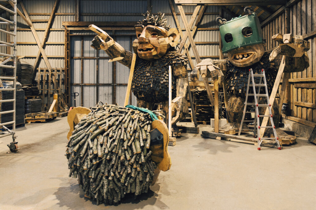 De eventyrlige trolde fungerer som indgang til en større refleksion over overforbrug og materialernes kredsløb.